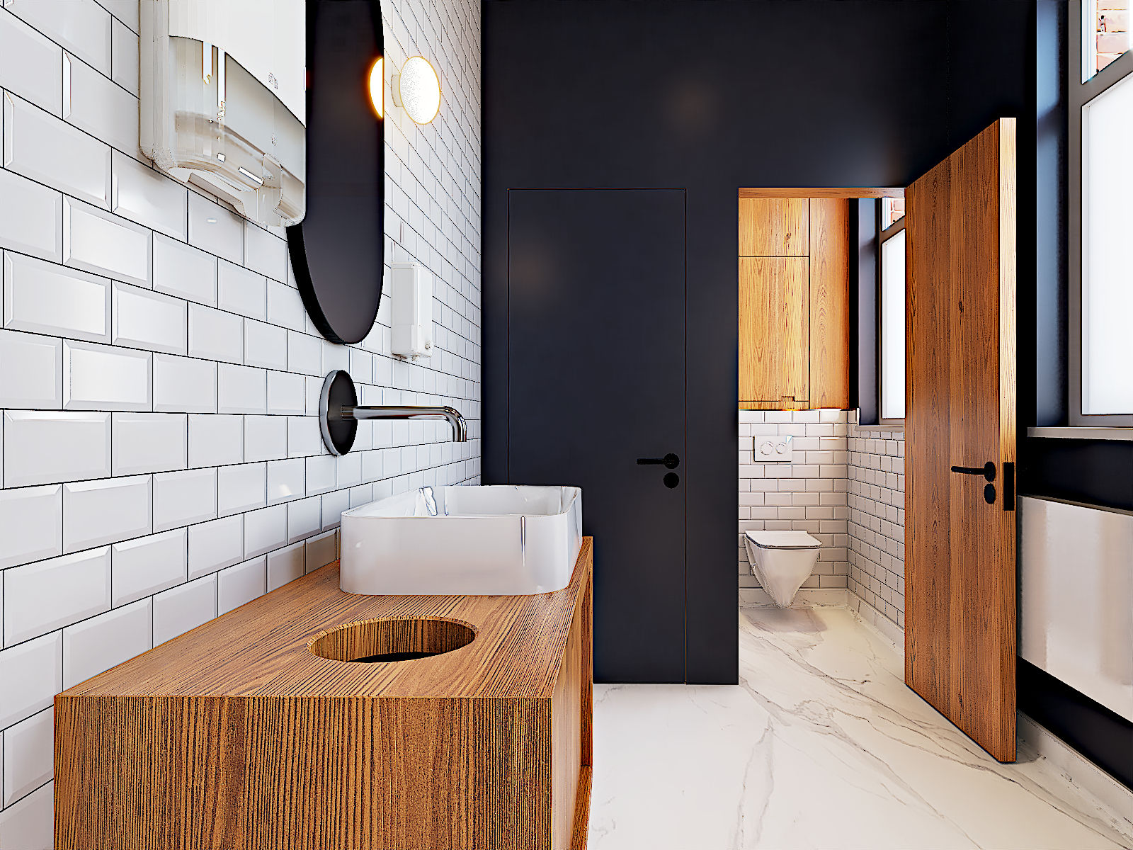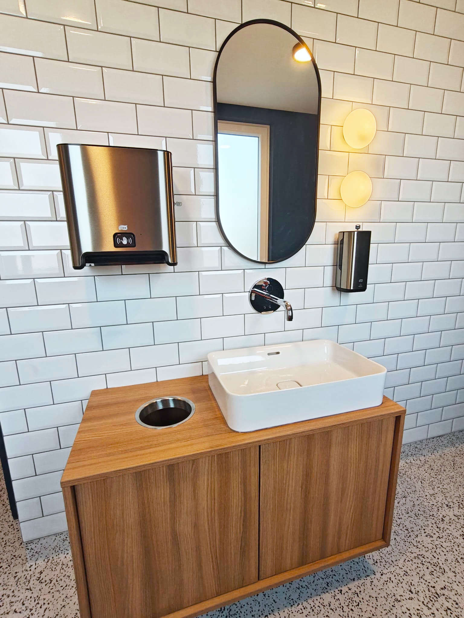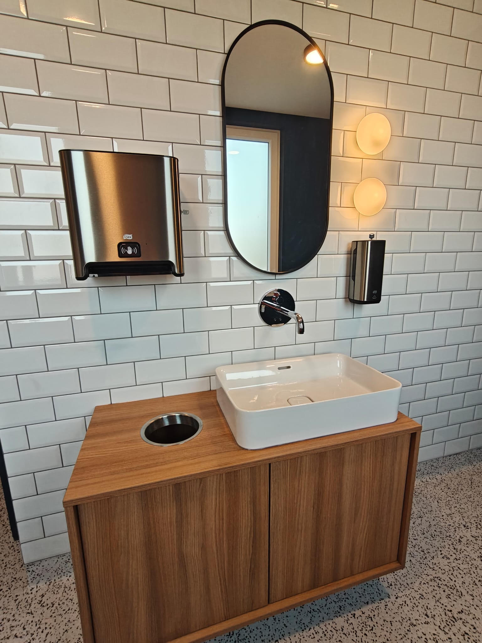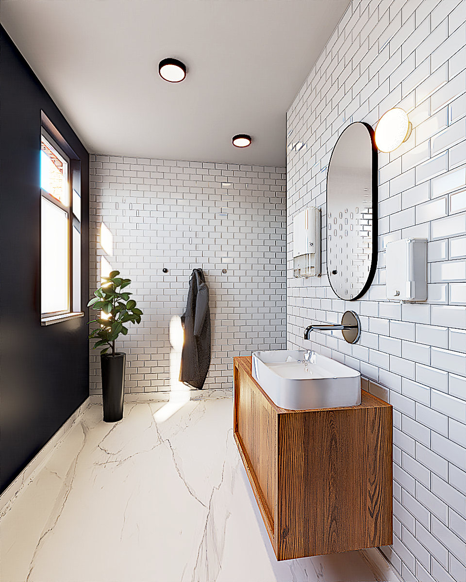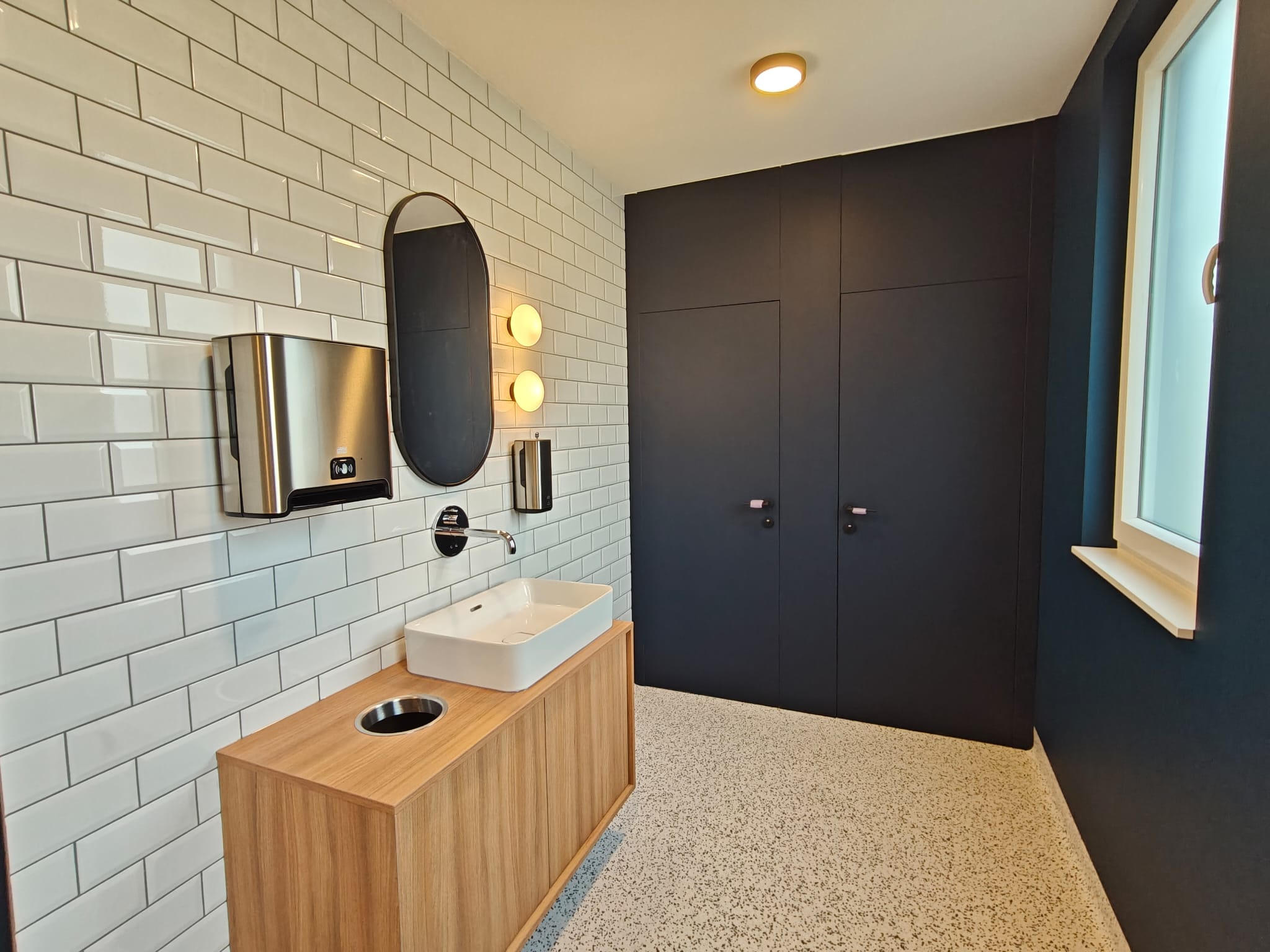 Les sanitaires présentaient une configuration datée, peu cohérente sur le plan esthétique et fonctionnel. Les matériaux, l’éclairage et l’organisation des espaces ne répondaient plus aux standards actuels en matière de confort, d’image et de durabilité.